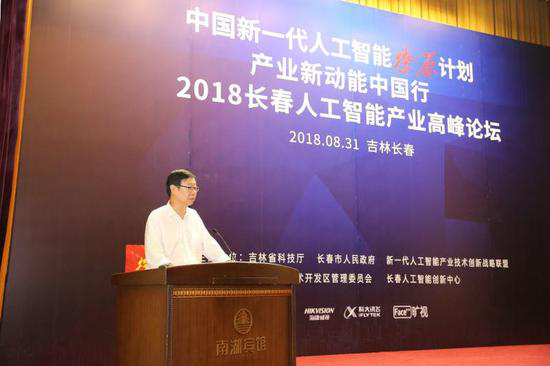 8月31日,“新一代人工智能燎原计划·产业新动能中国行暨2018吉林·长春人工智能产业高峰论坛”在南湖宾馆举办。来自国家新一代人工智能产业技术创新战略联盟及成员单位的学者、专家及长春当地的科研院所、高校、企业的300余人齐聚论坛,探讨如何经营老工业区人工智能产业生态圈。吉林省科学技术厅厅长于化东,长春市副市长贾晓东,吉林省长春市政协副主席、长春经开区党工委书记、管委会主任何泉秀。
