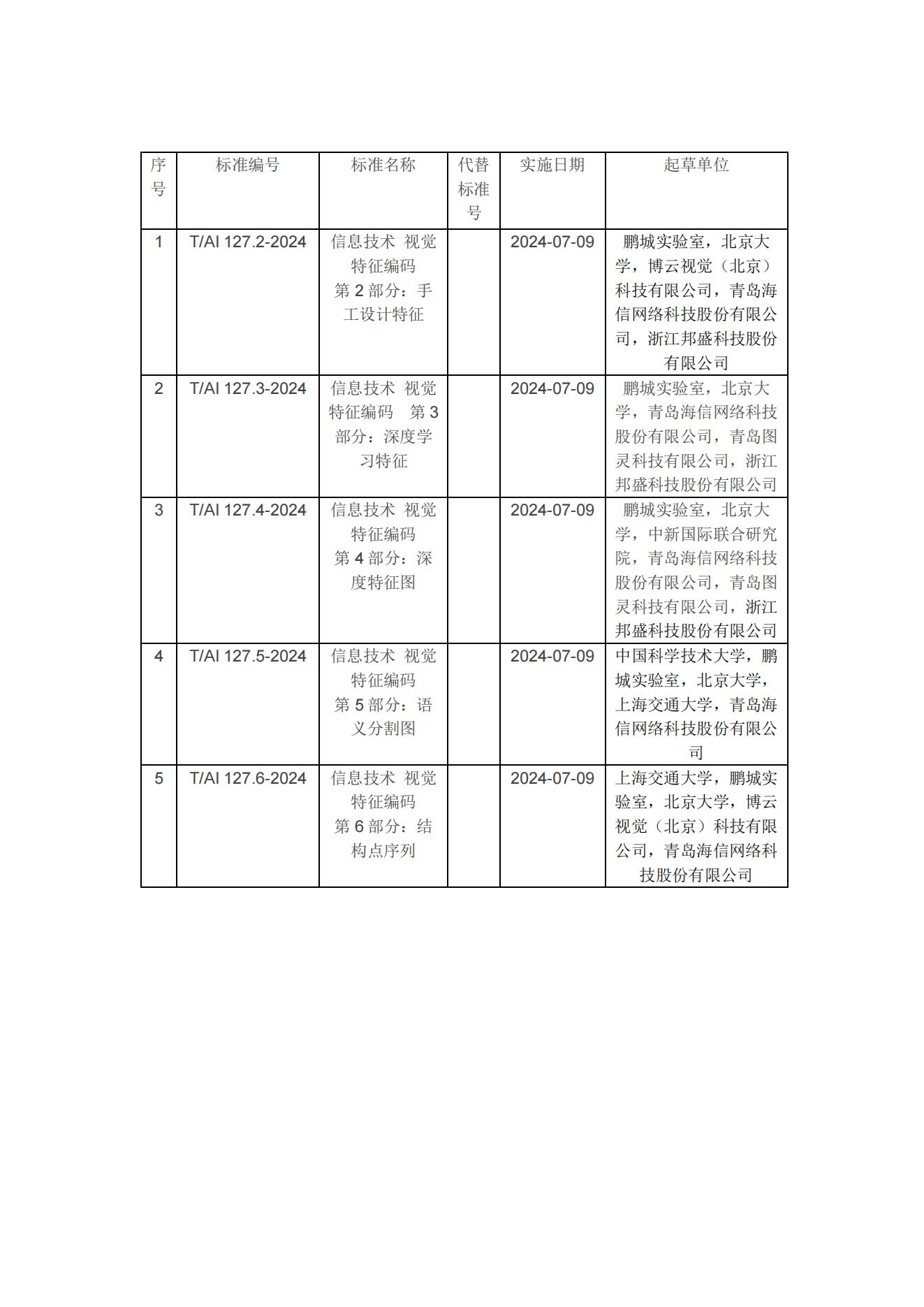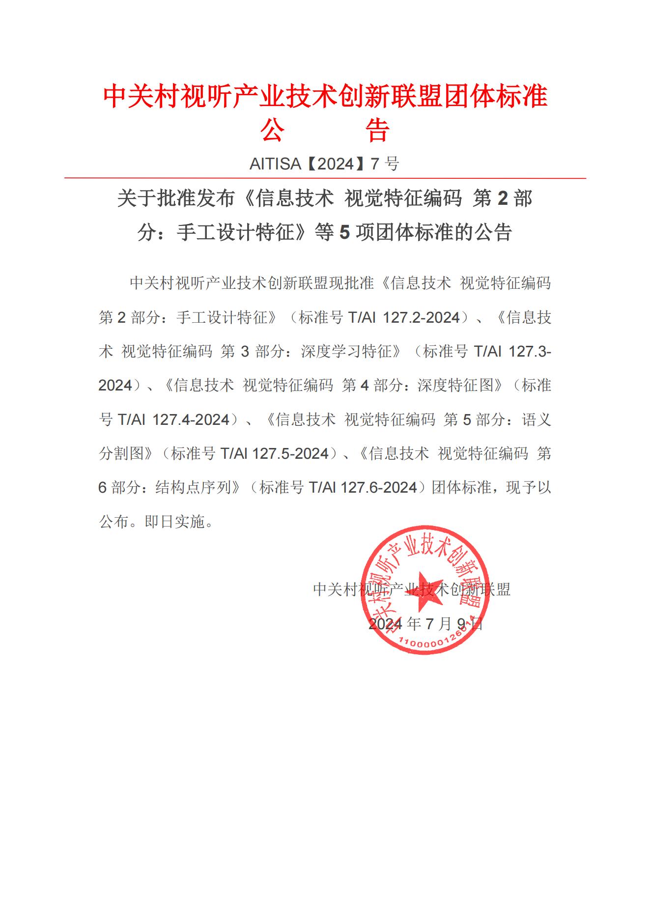 关于批准发布《信息技术 视觉特征编码 第2部分:手工设计特征》等5项团体标准的公告